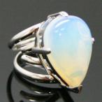 天然石 リング 指輪 フリーサイズ ティアドロップカボション 合成ムーンストーン シルバーカラー 約14x22mm