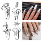 ラインストーン フィンガーチップ オープニング リング アジャスタブル ネイル ガード カバー リング シルバー