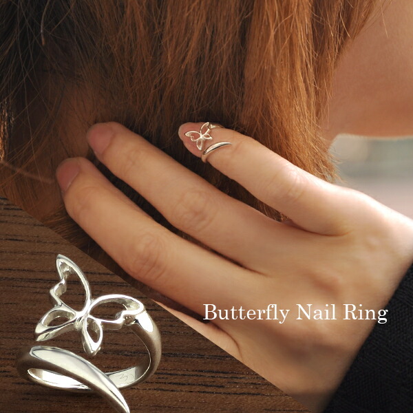 透かし 蝶 ネイルリング フリーサイズ 調節可能 シルバー925 リング 指輪 ピンキーリング ミディリング マニキュア チップリング 爪のリング