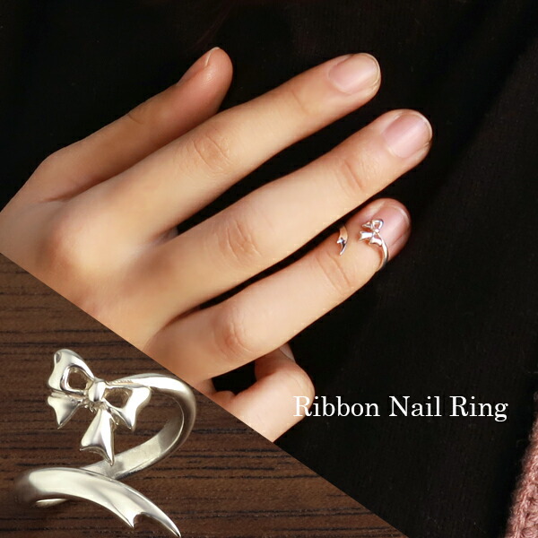 透かし リボン ネイルリング フリーサイズ 調節可能 シルバー925 リング 指輪 ピンキーリング ミディリング マニキュア チップリング 爪のリング