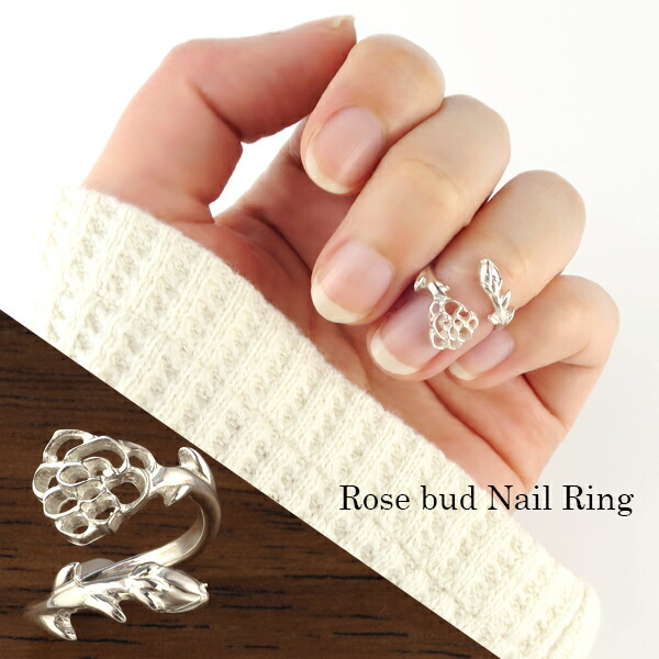 透かし ローズ ネイルリング フリーサイズ 調節可能 シルバー925 リング 指輪 ピンキーリング ミディリング マニキュア チップリング 爪のリング