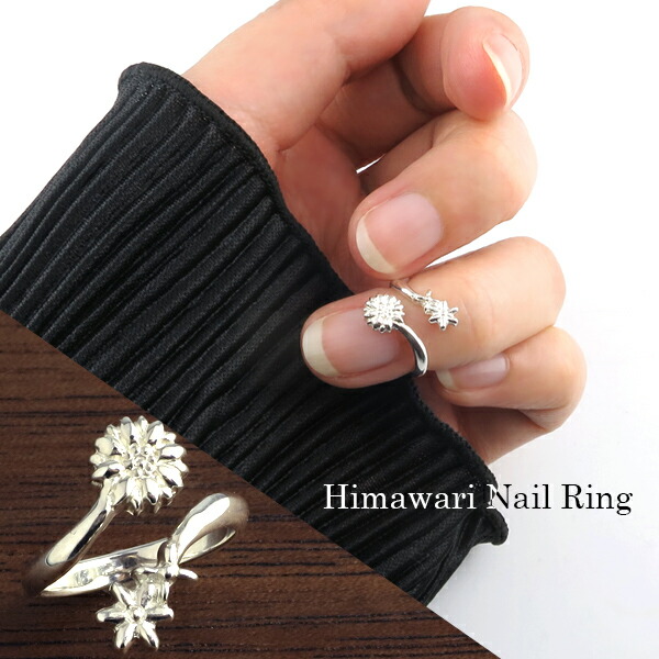 ひまわり ネイルリング フリーサイズ 調節可能 シルバー925 リング 指輪 ピンキーリング ミディリング マニキュア チップリング 爪のリング