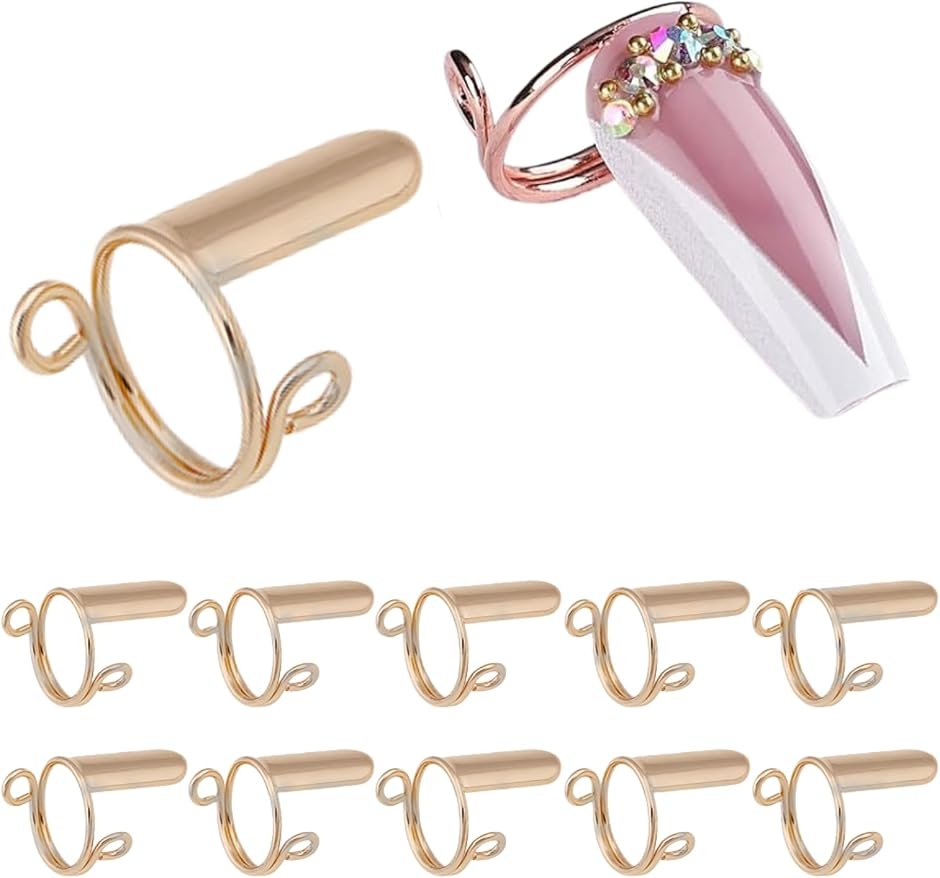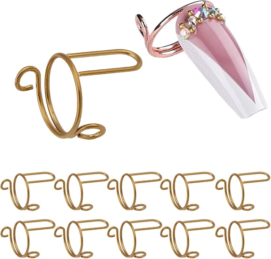 ネイル リング アート パーツ 指輪 調節可能 指先 10個入り 女性 ファッション 小物 おしゃれ チップ (ゴールド, 土台なし)