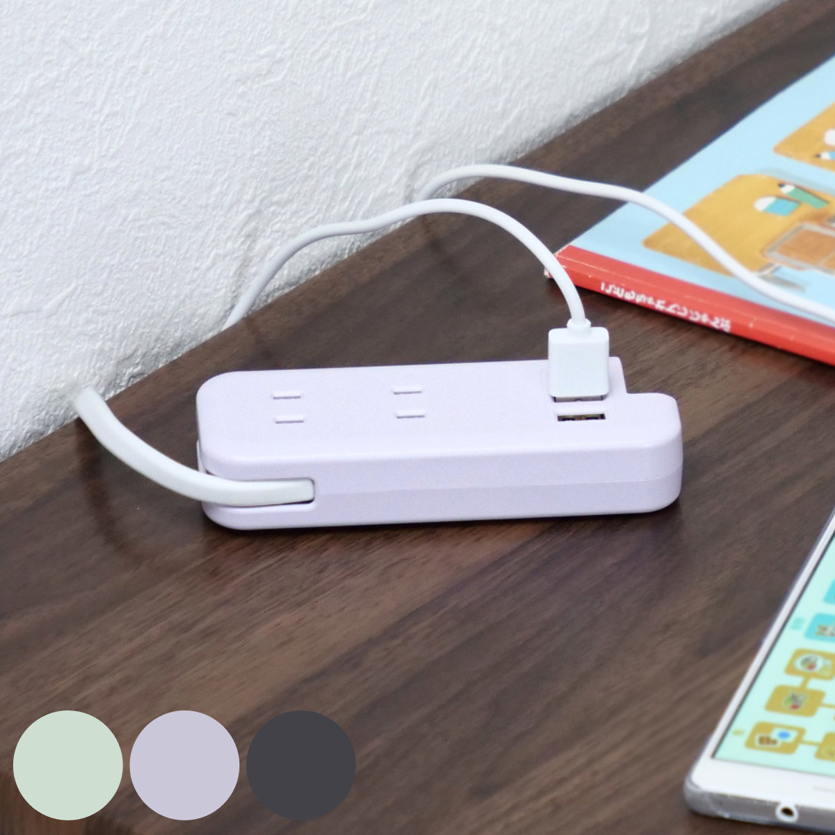 コンセント タップ スリムポータブルコンセント USB‐A 3ポート ユートリムエル ポーチ付 ( ACアダプター USBアダプター 電源タップ 3口 PSEマーク認証済 )