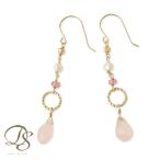 【土日限定1500円OFFクーポン有】 18金 ピアス k18 18金ピアス 18k 天然石 ピンクトパーズ ローズクオーツ 淡水パール k18ピアス ピアス18金 両耳