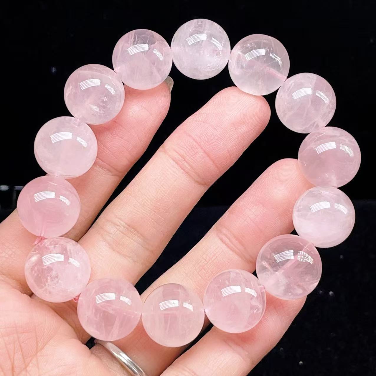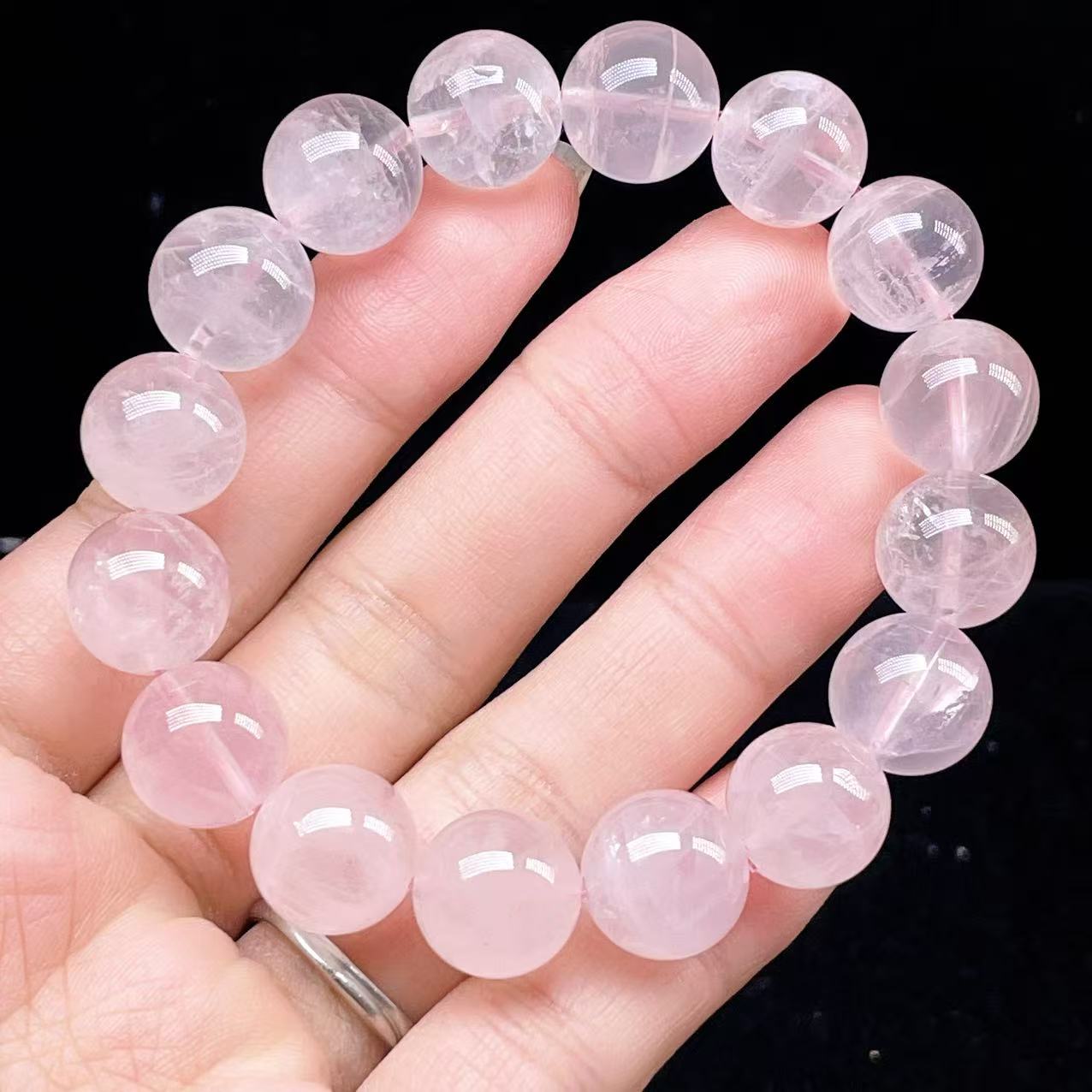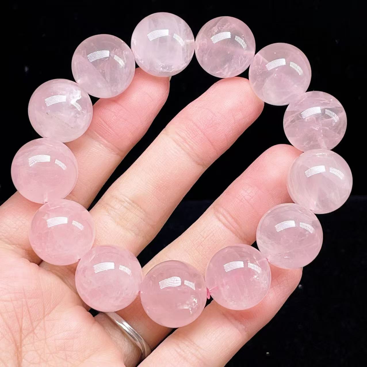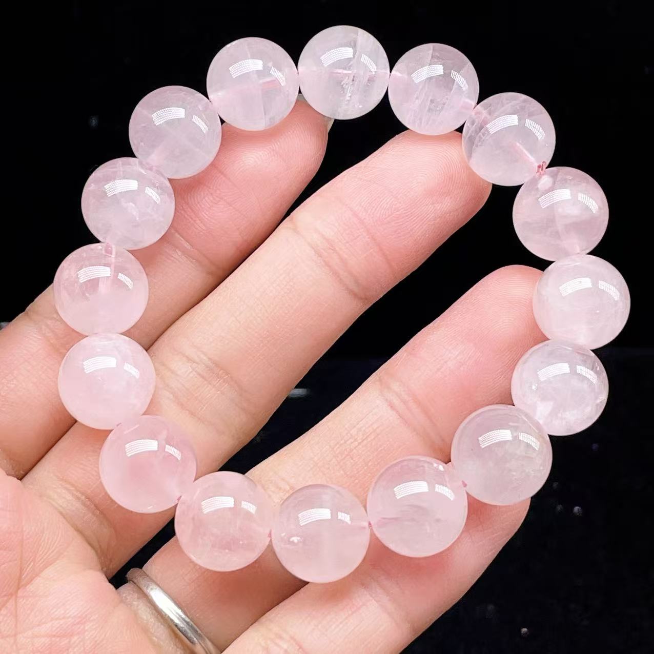 PROME 天然石【一点物】高品質・高透明・ローズクオーツ・ラベンダーピンクローズクオーツ・ パープルローズクオーツ・マダガスカル産・ブレスレット・v75624