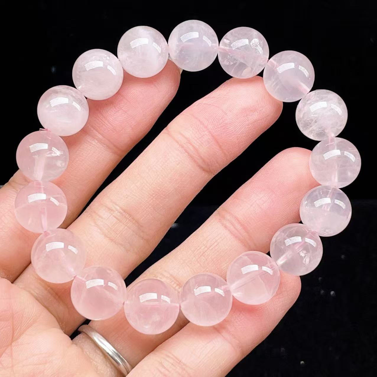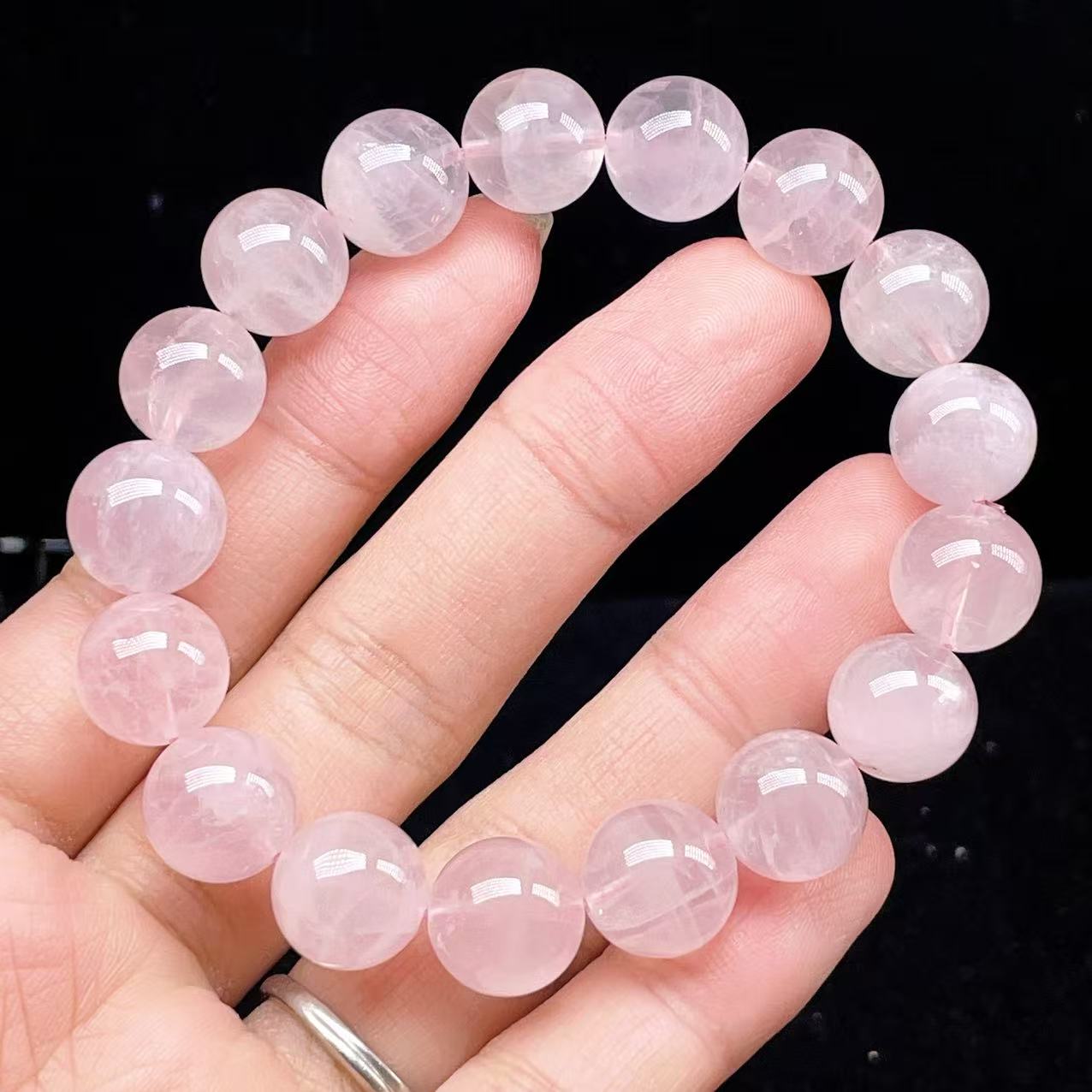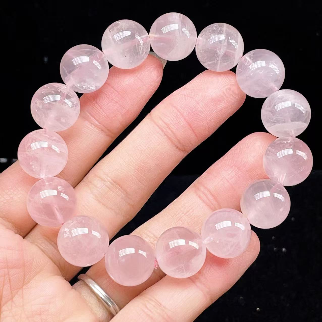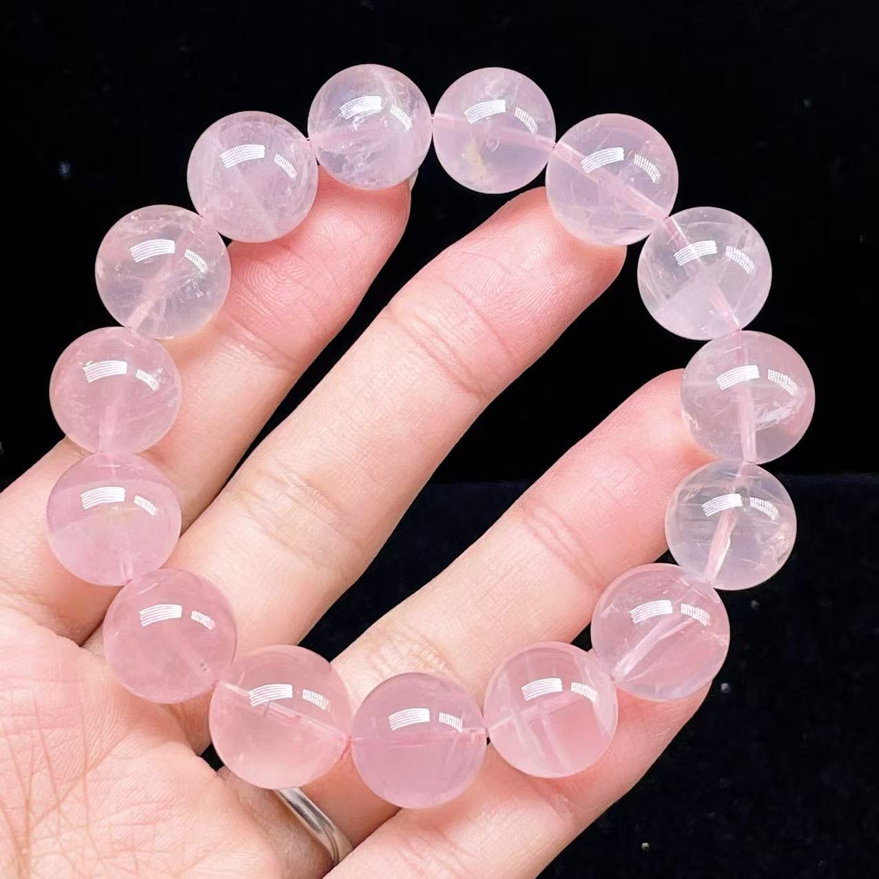 PROME 天然石【一点物】高品質・高透明・ローズクオーツ・ラベンダーピンクローズクオーツ・ パープルローズクオーツ・マダガスカル産・ブレスレット・v75624