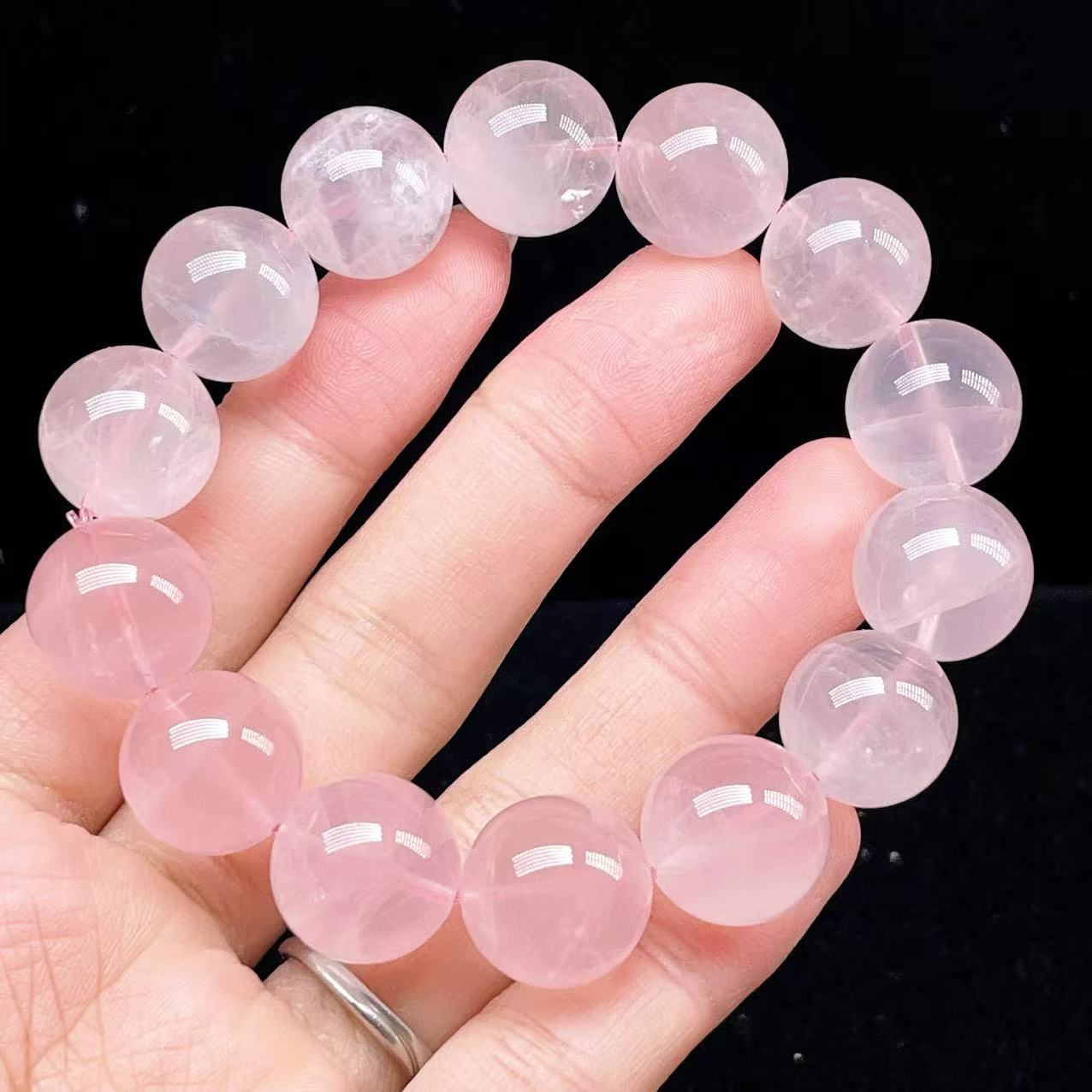 PROME 天然石【一点物】高品質・高透明・ローズクオーツ・ラベンダーピンクローズクオーツ・ パープルローズクオーツ・マダガスカル産・ブレスレット・v75623