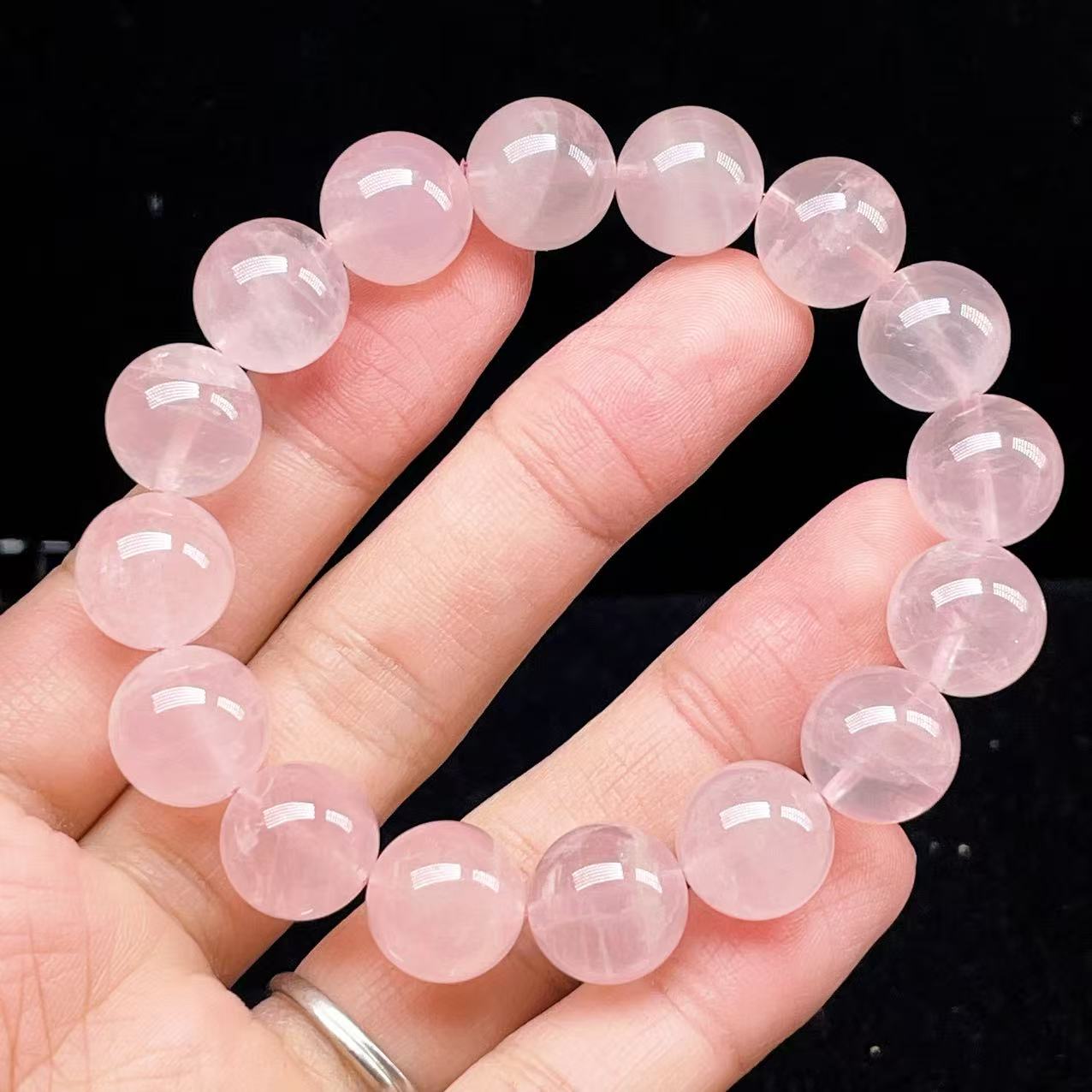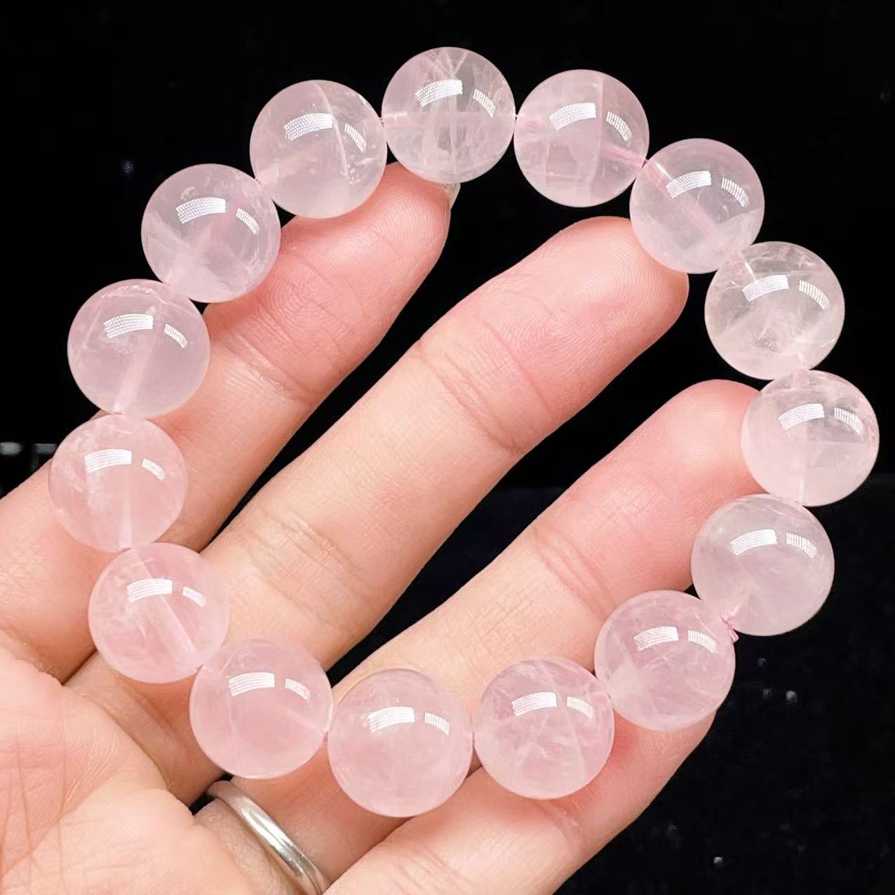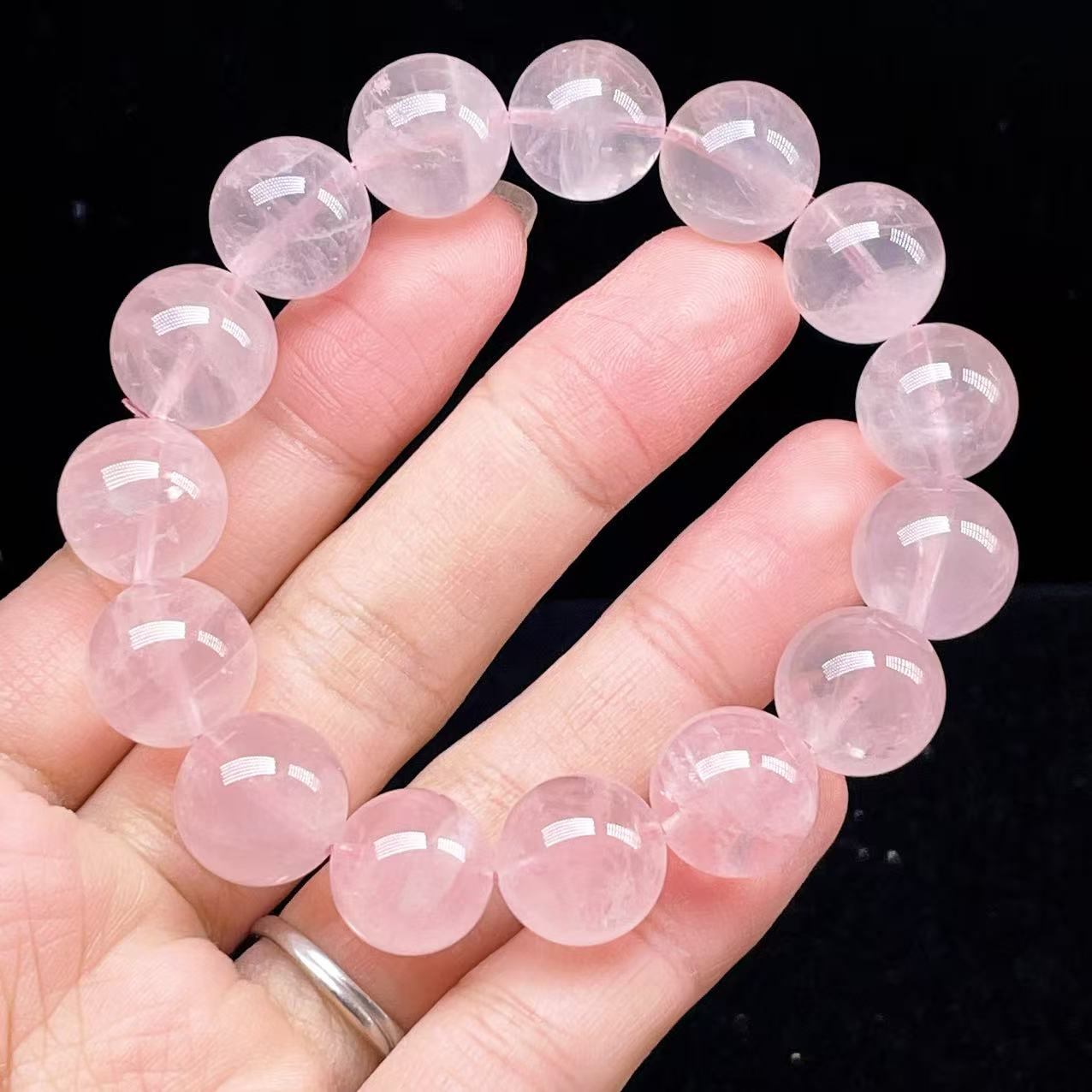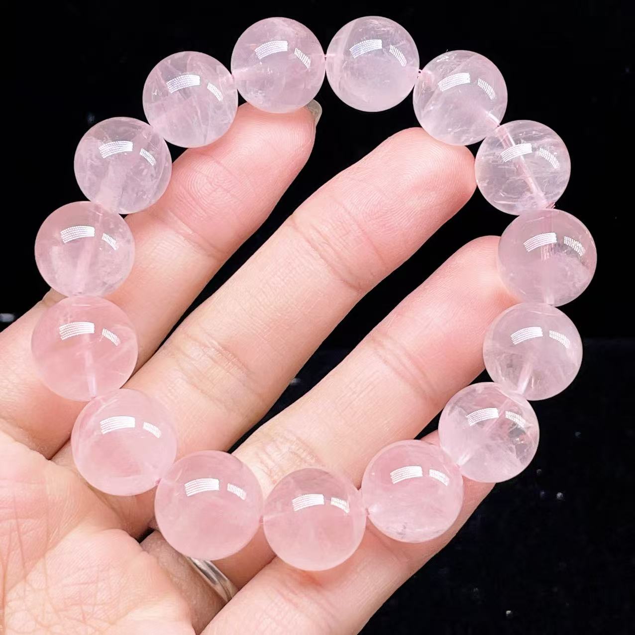 PROME 天然石【一点物】高品質・高透明・ローズクオーツ・ラベンダーピンクローズクオーツ・ パープルローズクオーツ・マダガスカル産・ブレスレット・v75645