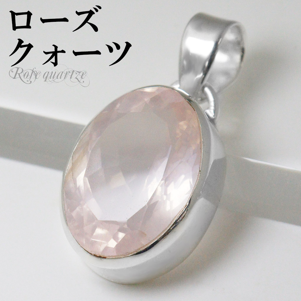 ローズクォーツ カット シルバー ペンダントトップ オーバル チェーンなし ローズクォーツペンダント ローズクオーツ 天然石 パワーストーン 爆買