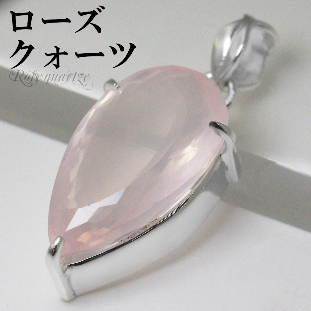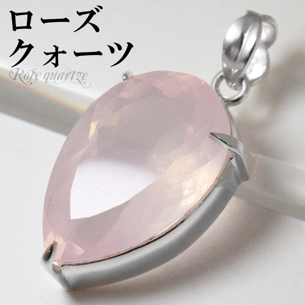 ローズクォーツ カット 大粒 シルバー ペンダントトップ 逆しずく型 チェーンなし ローズクォーツペンダント ローズクオーツ 天然石 パワーストーン 爆買