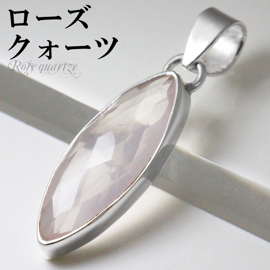 ローズクォーツ カット シルバー ペンダントトップ マーキス チェーンなし ローズクォーツペンダント ローズクオーツ 天然石 パワーストーン 爆買