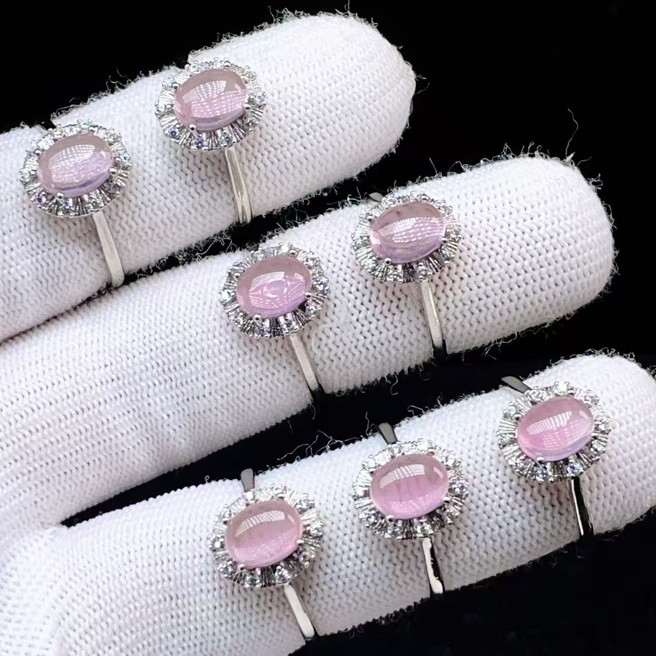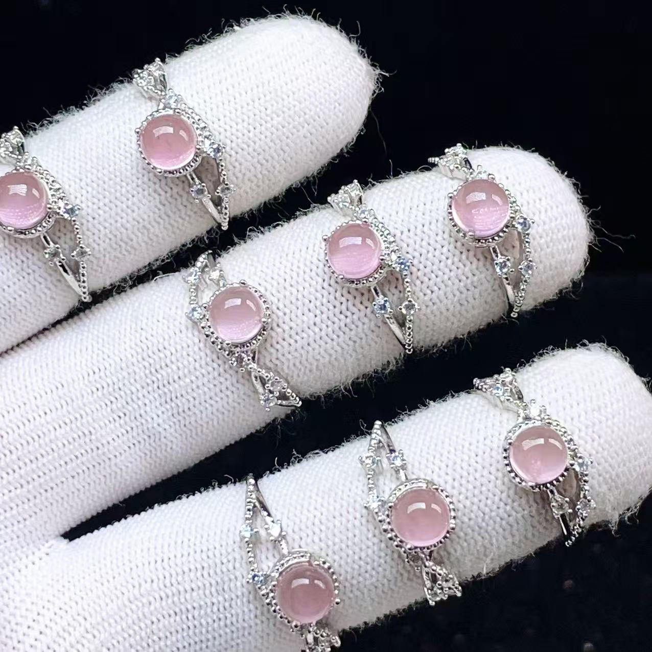 ローズクオーツ ミルククラウンセッティング カボション リング 春色ピンク PT900 K18 K10対応