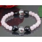 ★☆★ローズクオーツ&オニキス リボンブレスレット 厄よけ&恋愛運アップ パワーストーン♪ おまけ付き 送料無料(a_r)b