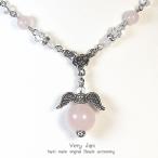 パワーストーン天然石 キュートな女性のための天然石 ローズクォーツのプチ天使 ネックレスvj