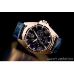 ブルー&ゴールド上級レトログラード本革100m防水マルチ腕時計