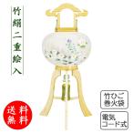 提灯 ちょうちん 盆提灯 おぼん 初盆 創作 モダン 送料無料 竹絹二重絵入 竹ひご巻き火袋 外火袋絹張り 電気コード式 ミニ コンパクト かわいい
