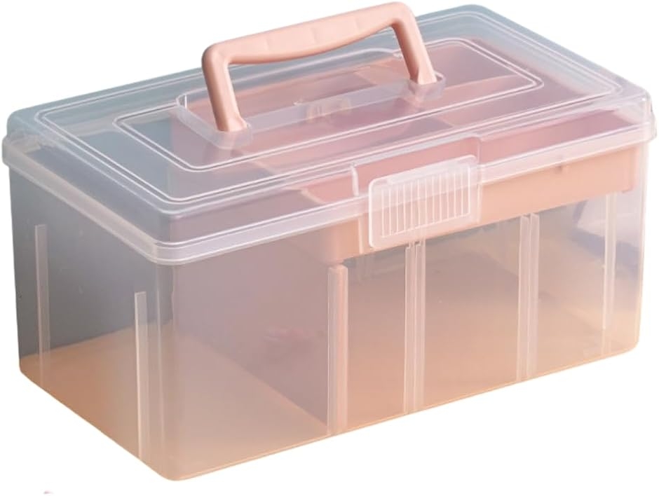 救急箱 大容量 多機能 大型 収納ボックス 小物入れ 大容量収納ケース 仕分け 透明デザイン 2段構成 プラスチック素材 (ピンク)