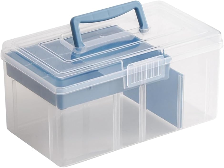救急箱 大容量 多機能 大型 収納ボックス 小物入れ 大容量収納ケース 仕分け 透明デザイン 2段構成 プラスチック素材 (ブルー)