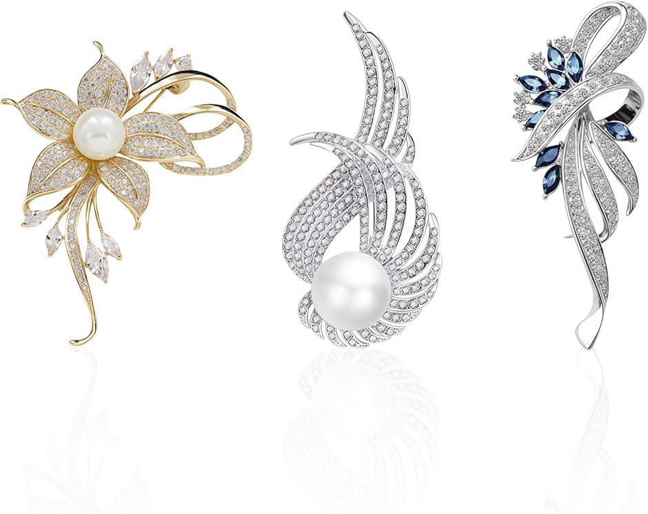 ブローチ セット コサージュ パール クリスタル 女性人気プレゼント おしゃれ ギフト 結婚式 卒業式 入学式 面接 発表会 (シルバー)