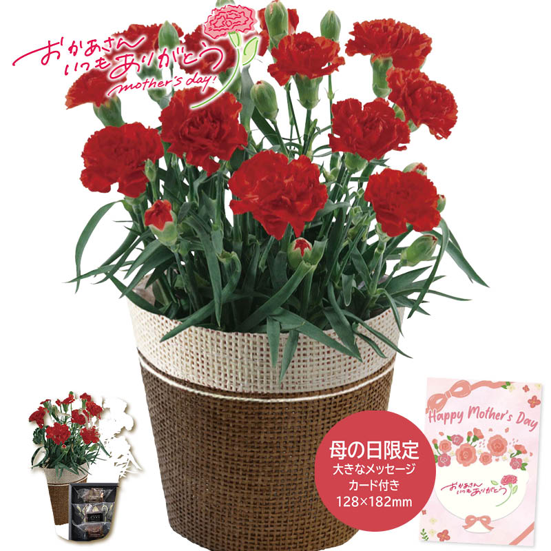 母の日 プレゼント 2026 カーネーションレッド4号&ホテルオークラ ケーキ&ブラウニー&クッキーアソート 母の日ギフト 母の日 花とお菓子 (#1853-987)