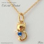 ネックレス レディース サファイア k18ゴールド 18金 ネコ ペンダント 猫 キャット母の日 誕生日 プレゼント ギフト 母の日