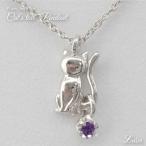 ネックレス レディース アメジスト 一粒石 プラチナ900 ネコ ペンダント 猫 キャット母の日 誕生日 プレゼント ギフト 母の日