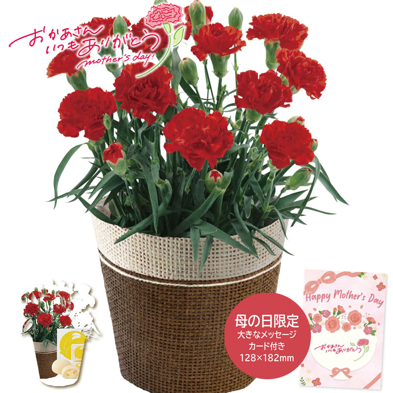 母の日 プレゼント 2026 母の日 ミニカーネーションレッド4号&月でひろった卵セット 母の日ギフト 母の日 花とお菓子 (#1854-016)