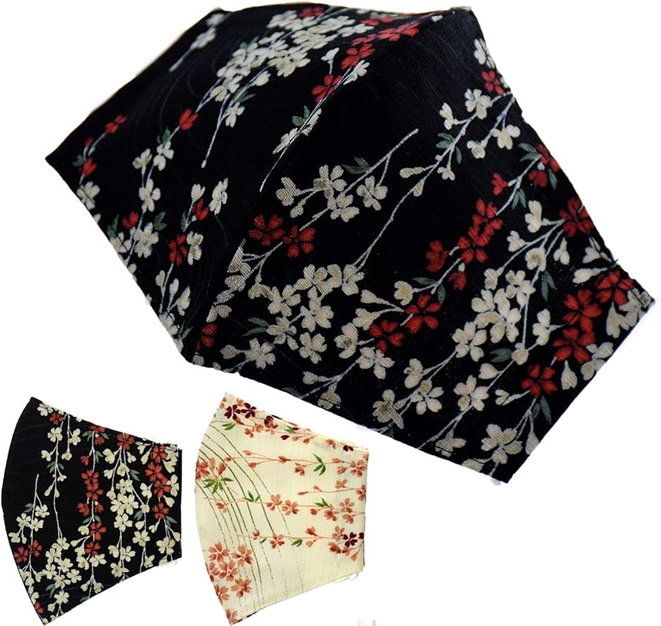 マスク 日本製 洗える 立体 息がしやすい おしゃれ和柄 花柄 布マスク 流水花(ブラック, SM)