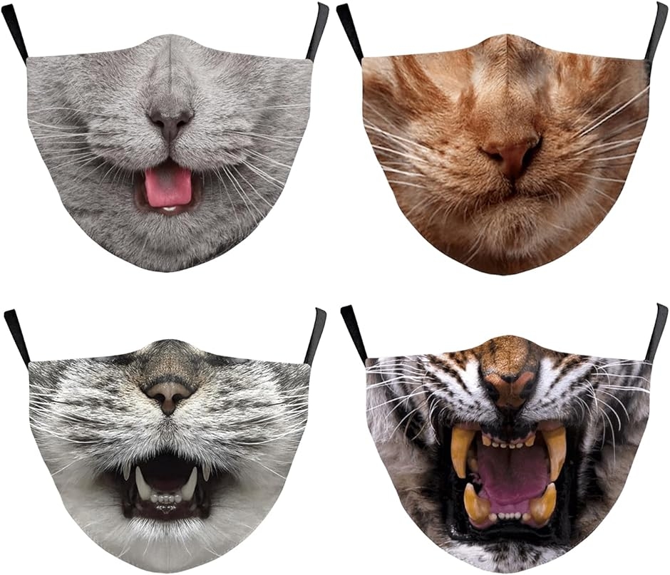 猫柄 おもしろマスク 口元 立体 洗える 面白い ねこ 動物 コスプレ ハロウィン (猫 4枚 セット)