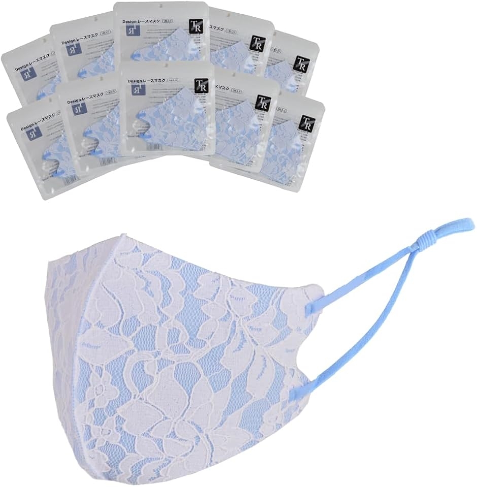 デザインレースマスク フラワー 花柄 大人用 レディース 日焼け対策 保温効果 花粉 ほこり 洗える 防寒 (ブルー, 10枚セット)