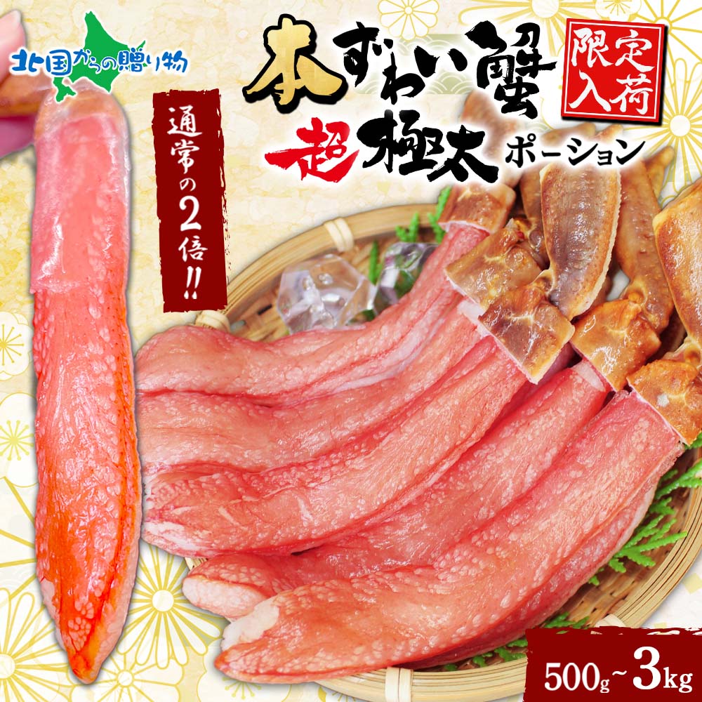 ズワイガニ 超極太 カニ ポーション 500g 1kg 1.5kg 2kg 3kg かに むき身 カット済み 生食可 刺身 蟹しゃぶしゃぶ