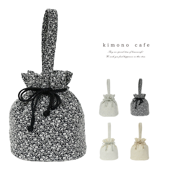 袴巾着 一本手 レース グレー 黒 白 ベージュ 卒業式 小学生袴 二尺袖 バッグ 爆買